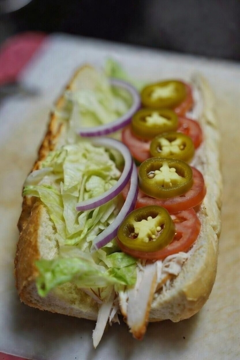 Ground beef, melted American, lettuce, tomato, onion, ketchup & mayo on hoagie.